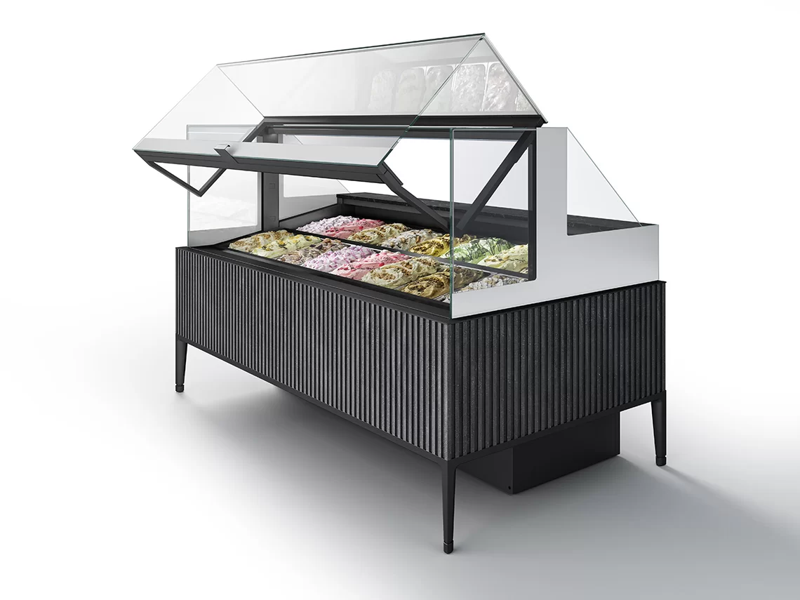 It is also possible to choose 3 different ways to display the ice cream, according to the 3 types of ventilation available. he heated glass allows you to manage even the most demanding weather conditions.